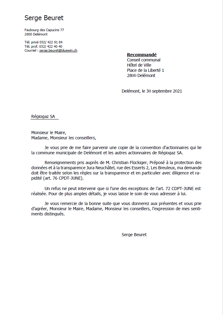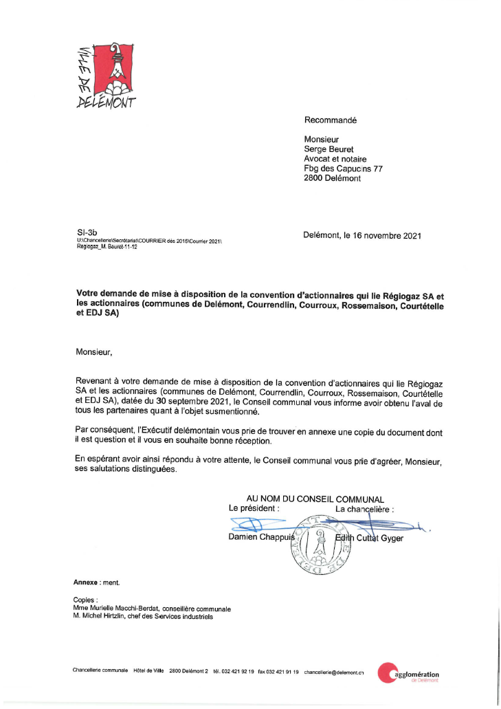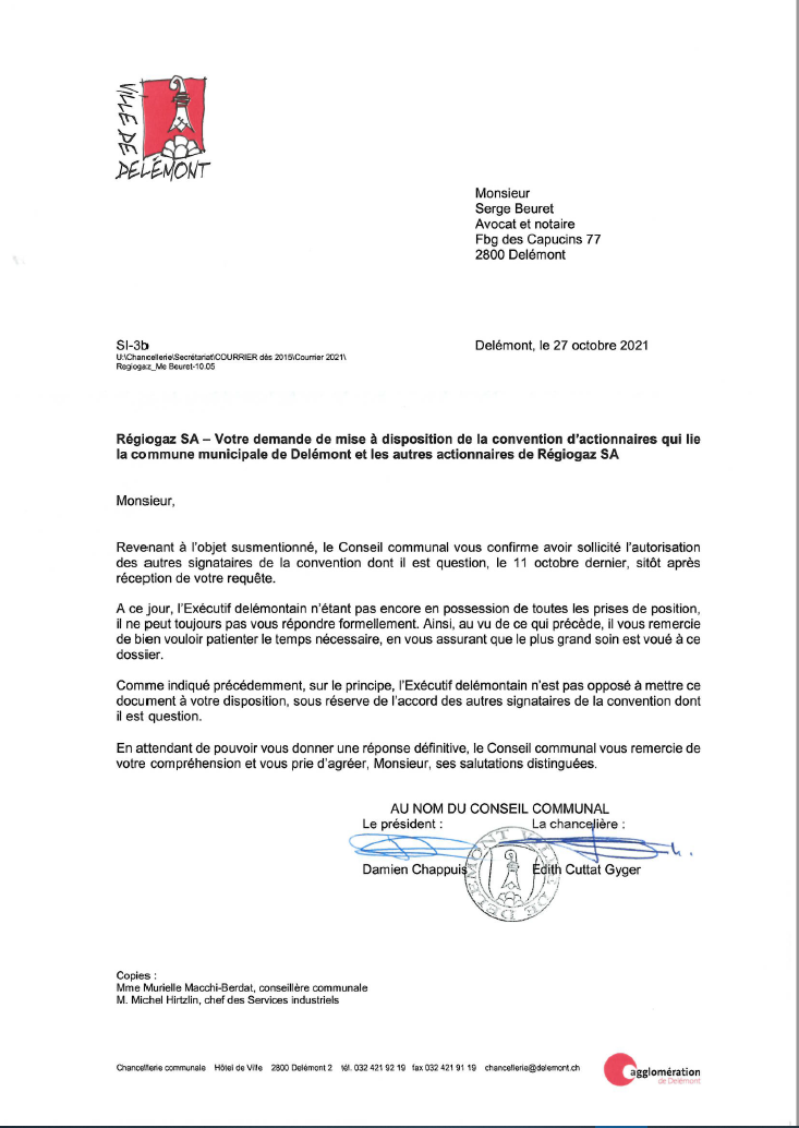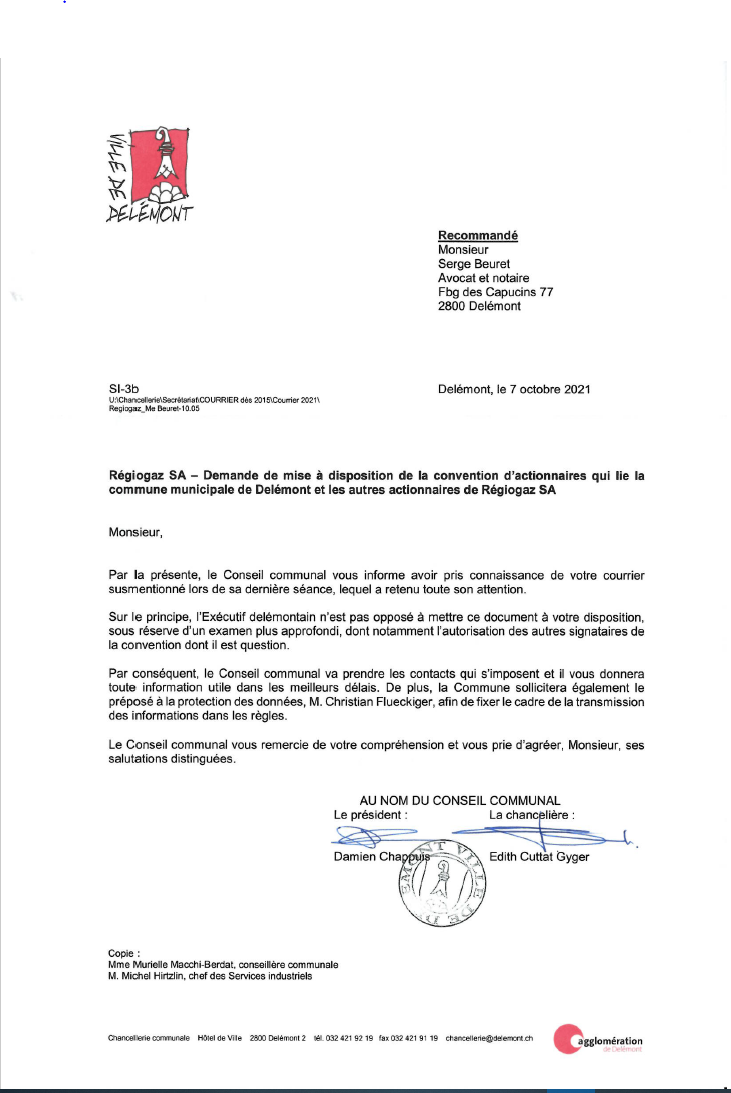 PPolitique communale Régiogaz9 septembre 2021 Régiogaz SA, commune de Delémont, Services industriels de Delémont (SID), le citoyen-contribuable de Delémont, éventuel abonné au gaz,…