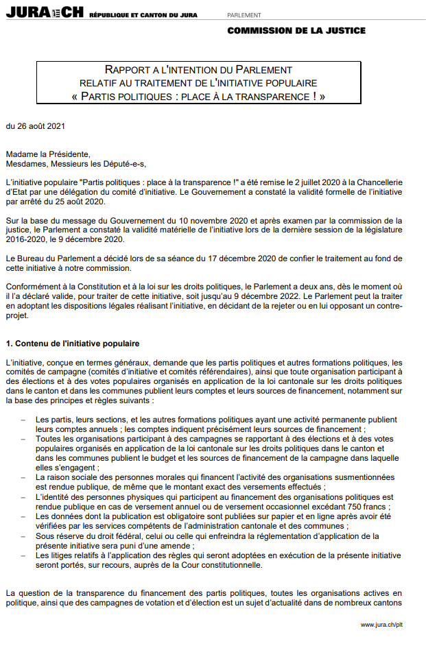 Rapports du Parlement – République et Canton du Jura